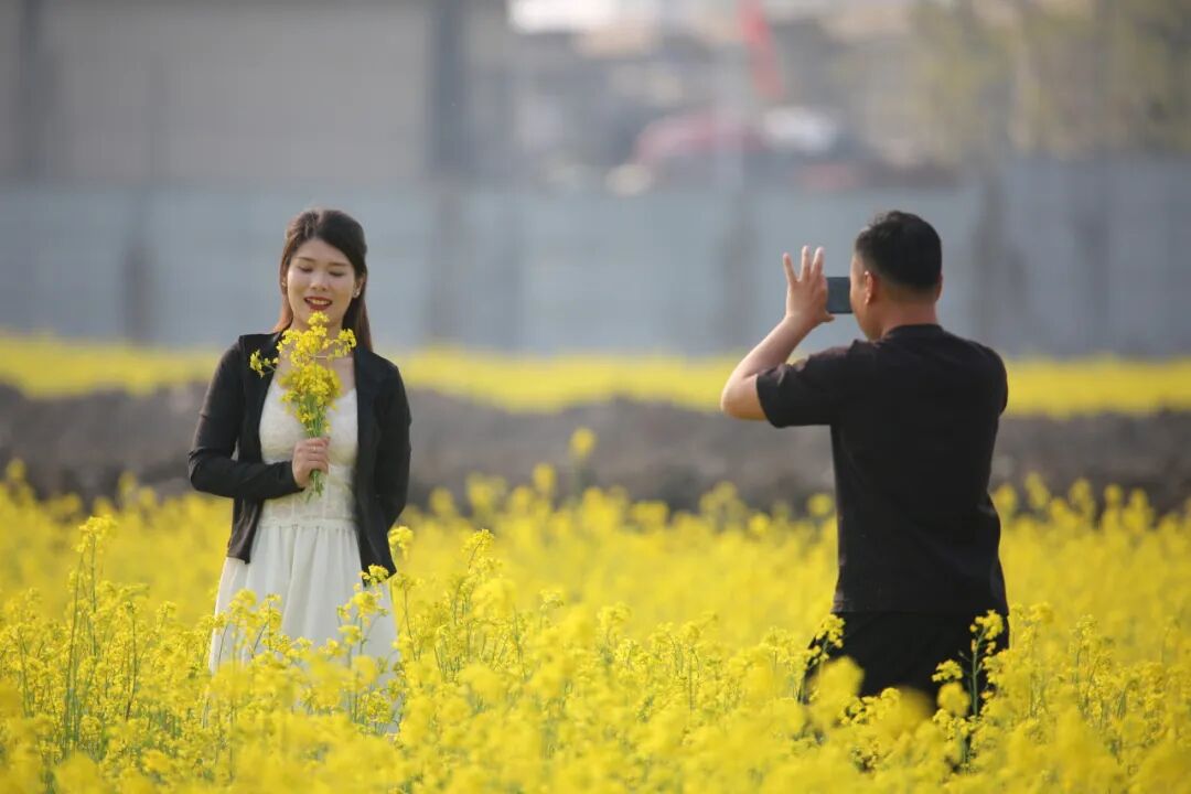 当你带着相机走进兰山区枣园镇宏歌音乐公园的百亩油菜花海,想静静赏个春——结果发现,根本“静”不下来!